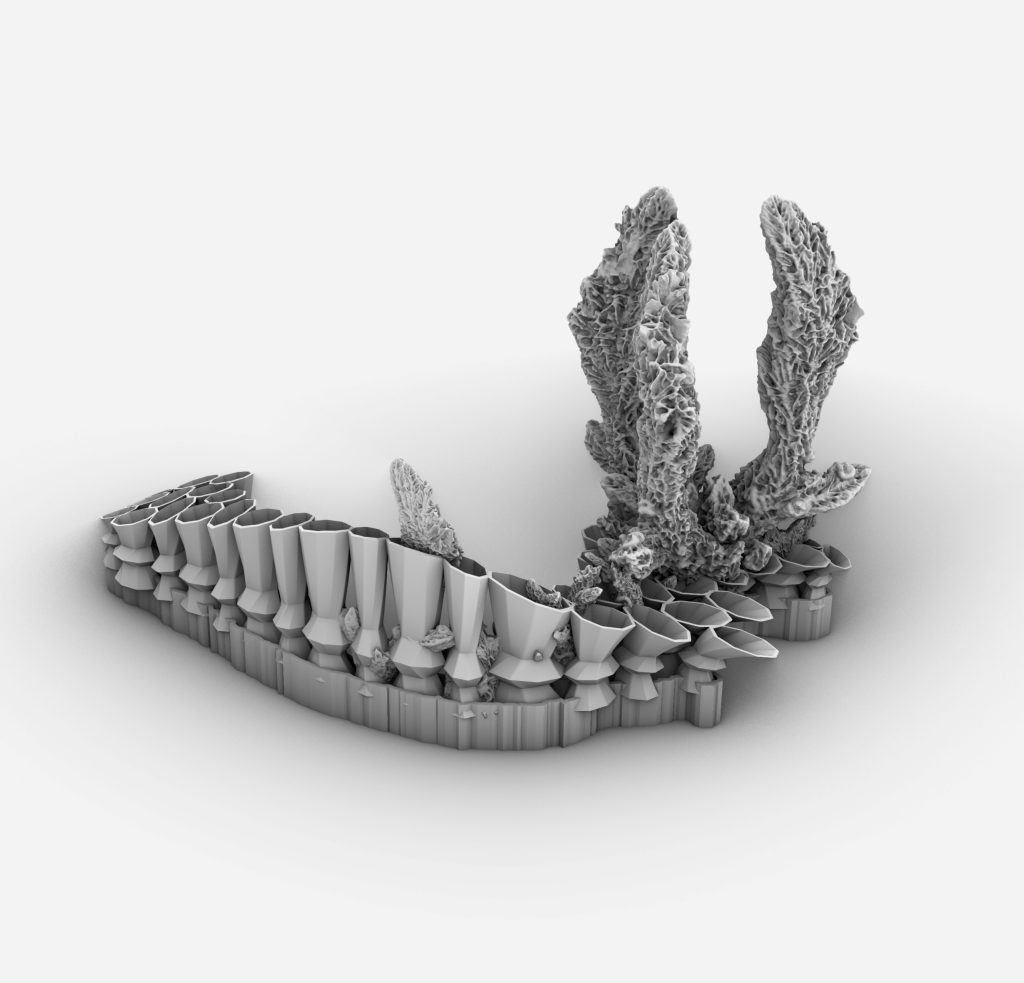 Mit Bezug auf die künstlichen Formen und die anmutige Anordnung in der industriellen Welt der Menschen beabsichtige ich, eigens gestaltete Strukturen zu kreieren. Diese sollen nicht nur als ästhetische Elemente fungieren, sondern auch dystopische industrielle Ausdrücke und künstlerische Originalität in meine Designarbeit einfließen lassen.